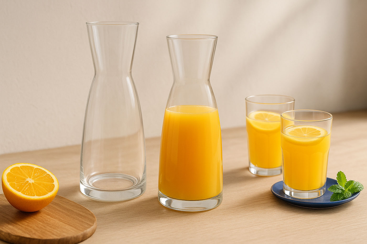 Ideală pentru apă răcită, sucuri răcoritoare sau alte băuturi, carafa Aquaria asigură o prezentare elegantă. Forma sa ergonomică se potrivește confortabil în mână, în timp ce gâtul subțire permite o turnare controlată. Un adevărat punct de atracție în design, care îmbină plăcerea și estetica într-un mod elegant.