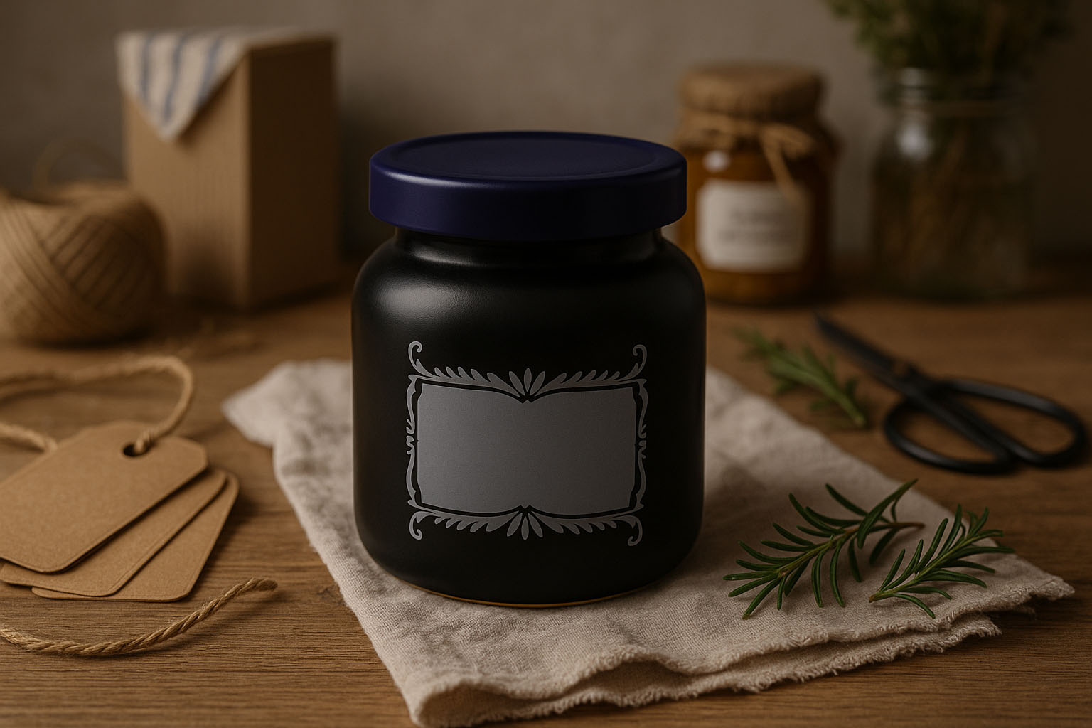 270 ml vas din ceramică de gresie, motiv: câmp pentru etichetă, ceramică, negru, gură: capac cu filet