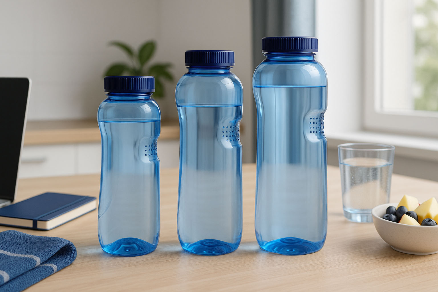 Designul ergonomic cu mâner asigură o utilizare confortabilă, în timp ce designul distinctiv albastru conferă un aspect modern. Disponibile în variante de 500 până la 1000 ml, sticlele sunt ideale pentru apă, sucuri sau băuturi sportive – perfecte pentru drum, birou sau antrenament. Fabricate în Austria, impresionează prin calitatea și durabilitatea lor.