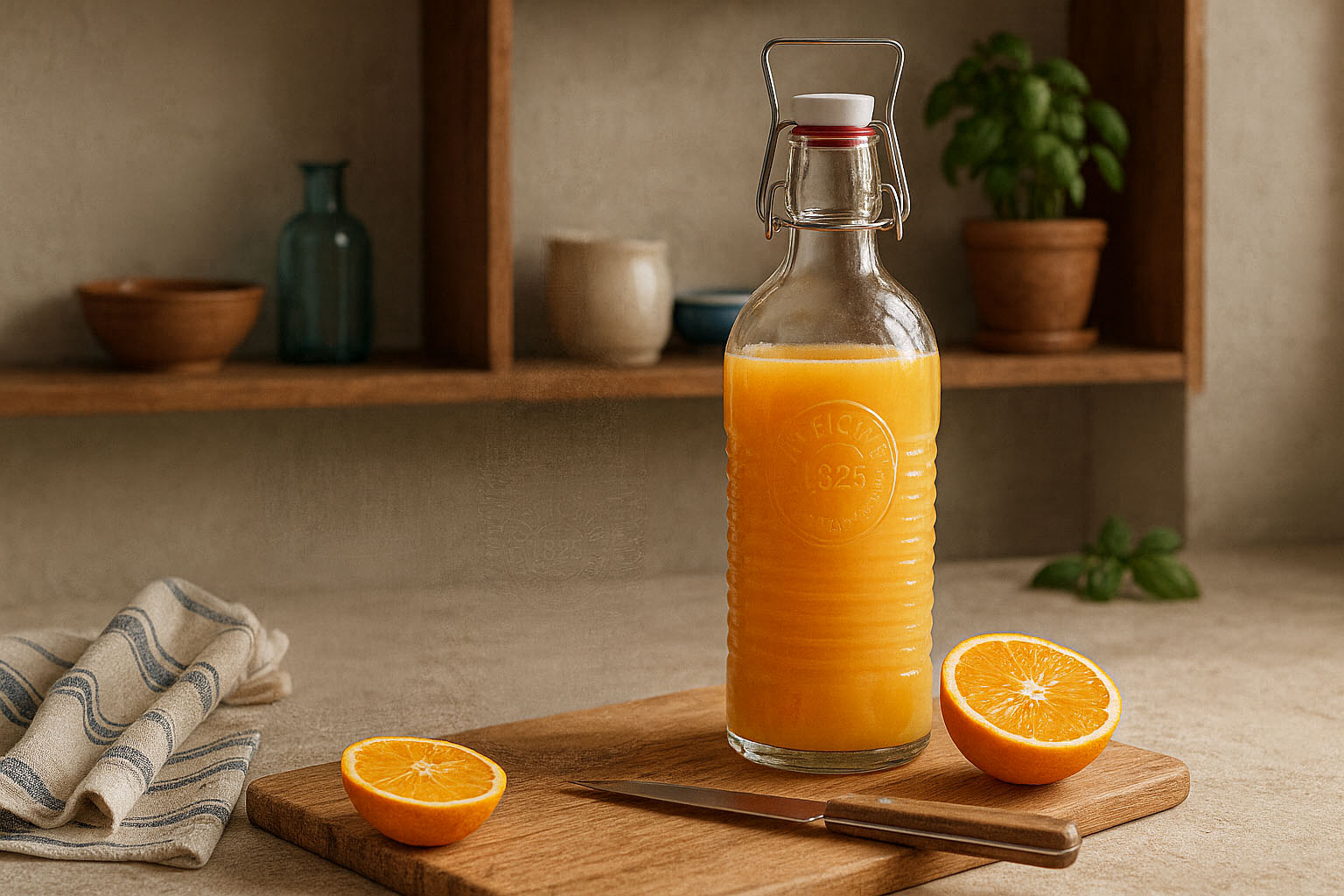 Fie că este vorba despre apă, lapte, suc sau multe alte lichide – sticla „Officina 1825” este versatilă. Capacitatea cu clemă asigură o etanșare sigură și permite o închidere ușoară, păstrând astfel prospețimea și aromele la cel mai înalt nivel.