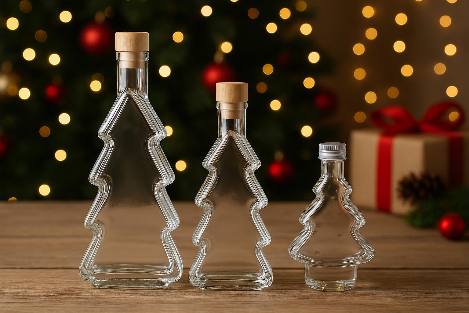 Fie pentru a vă prezenta deliciile la piața de Crăciun, fie ca un cadou iubitor, sticla noastră de sticlă transparentă de 200 ml „Christmas Tree” este potrivită.