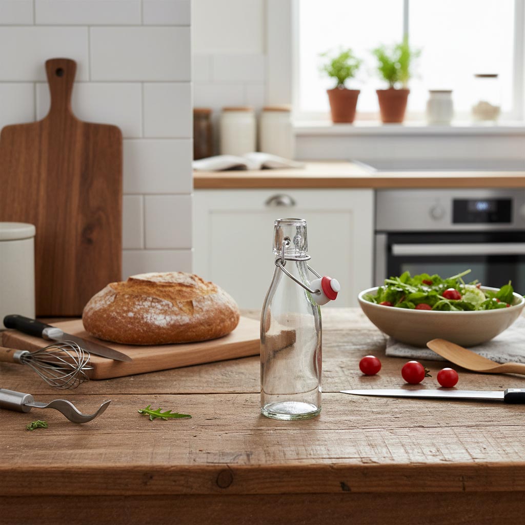Seria de produse „Paul” de la Flaschenland include sticle de sticlă de înaltă calitate de 200 ml, echipate cu un capac practic cu clemă, remarcându-se prin utilizarea lor versatilă și proprietățile robuste. Aceste sticle de sticlă sunt special concepute pentru depozitarea și savurarea lichiorurilor, băuturilor spirtoase și altor băuturi. Sticlele din seria „Paul” sunt realizate din sticlă rezistentă, care este atât rezistentă la frig, cât și la căldură. Astfel, ele nu sunt doar potrivite pentru mașina de spălat vase, ci și rezistente la microunde și cuptor, oferind o utilizare deosebit de flexibilă. Cu o capacitate de 200 ml, oferă dimensiunea ideală pentru cantități mici, în timp ce capacul sigur cu clemă previne scurgerile și păstrează prospețimea conținutului.