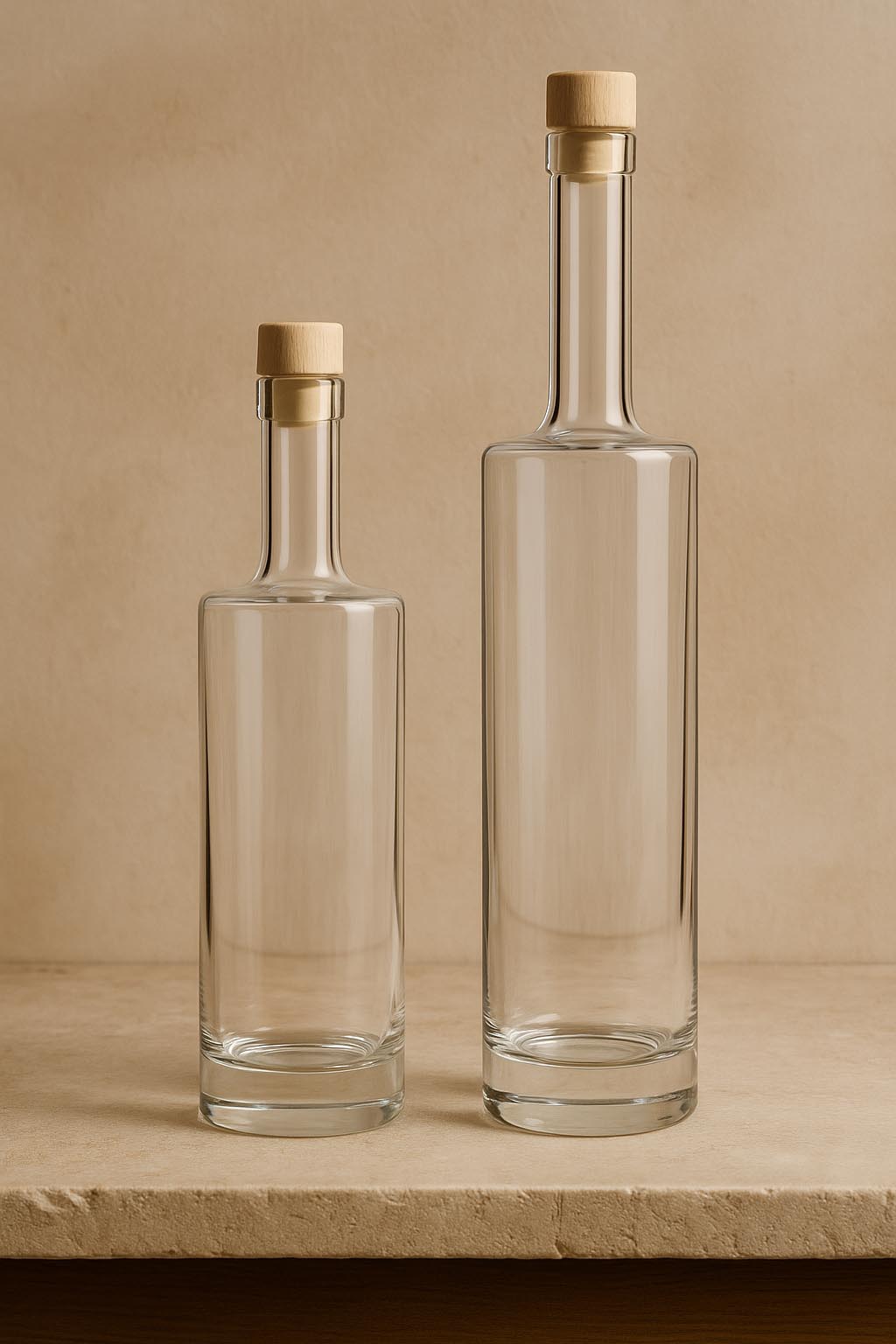 Seria „Titano” combină prezența puternică cu simplitatea rafinată și stabilește noi standarde în lumea ambalajelor de sticlă de înaltă calitate. Această sticlă cilindrică elegantă din sticlă transparentă impresionează printr-un fund de sticlă masiv, care nu doar oferă stabilitate, ci și conferă profunzime vizuală și exclusivitate. Disponibilă în dimensiunile de 500 și 700 ml, „Titano” este perfectă pentru spirtoase de calitate superioară, lichioruri fine și distilate cu caracter. Gura cu dop de plută asigură o etanșare clasică și sigură – capacele potrivite sunt disponibile în sortimentul nostru. Cu eleganța sa robustă și estetica atemporală, „Titano” este alegerea ideală pentru brandurile exigente care pun preț pe calitate și expresivitate.