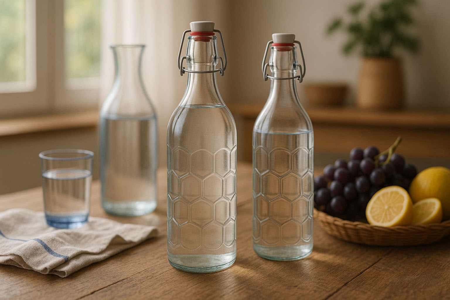 Sticla de 1000 ml „Rudi” cu un tip de fagure minunat este potrivită pentru suc, lapte, vin și alte produse de umplutură.