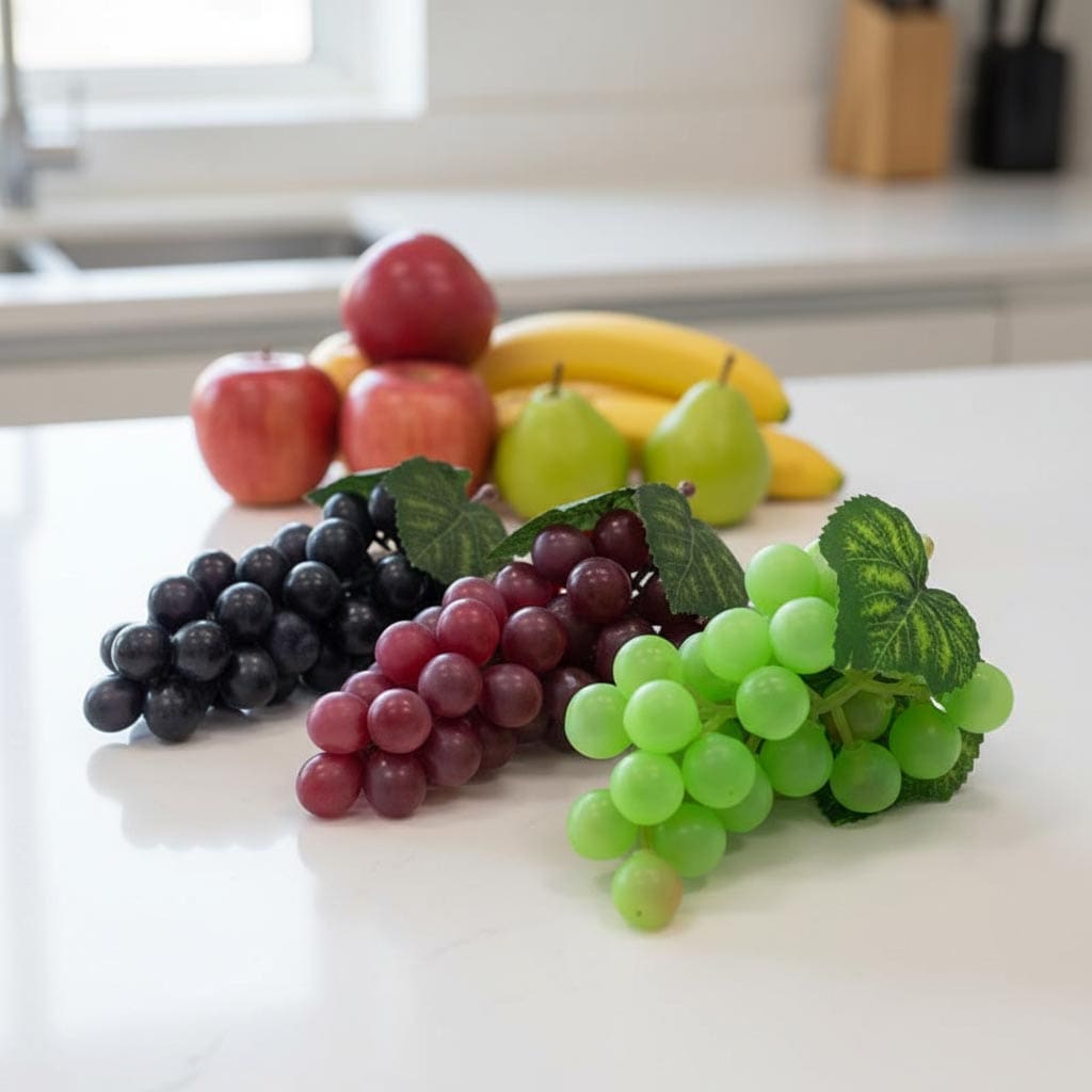 Strugurii verzi din plastic sunt ideali ca decor pentru sticle sau săli de expoziție. Disponibil și în alte culori.